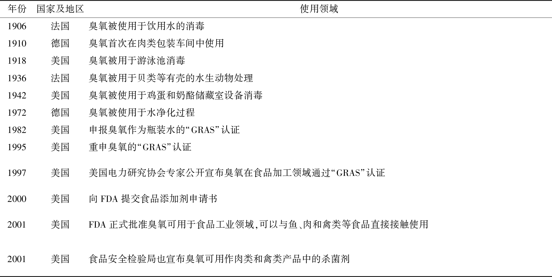 表1 臭氧在水處理和食品領(lǐng)域應(yīng)用簡(jiǎn)史[1]