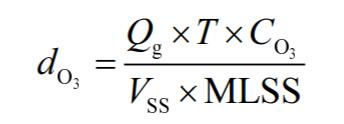 式中:dO3 為臭氧投加量,gO3/gMLSS;Qg 為氣源流量,L/min;T 為反應(yīng)時(shí)間,min;CO3 為臭氧濃度,mg/L;VSS 為污泥體積,L;MLSS 為污泥濃度,mg/L.
