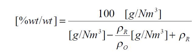 現(xiàn)在,“濃度”[%wt/wtl可以根據(jù)“濃度”[g/Nm]計算: