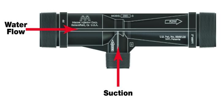 - 切勿限制文丘里管出口,考慮在文丘里管出口處使用比流入更大的管道,因為管道將充滿水和已吸入文丘里管的添加氣體。