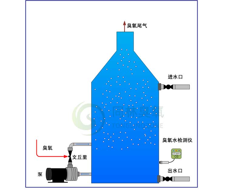 臭氧溶解與泵和文丘里噴射器是簡單的設(shè)置和相當(dāng)有效。由于文丘里管的強(qiáng)力混合作用,這將在槽井中混合水,并比典型的氣泡擴(kuò)散器實(shí)現(xiàn)更高的臭氧向水中的傳質(zhì)。