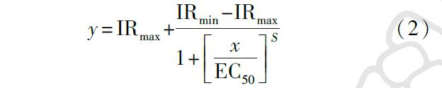 使用Origin(Originlab,2019b)擬合水樣的劑量-效應曲線,計算很大半抑制濃度,具體如式(2)