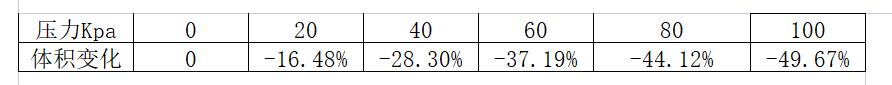 測量氣體壓力通常以“表壓”表示,其絕對靜壓為當地大氣壓與表壓之和。設定溫度為 0 ℃不變,當地大氣壓為標準氣壓,一定質量的氣體體積隨表壓增大而減小,其變化量如表 C.2 所示。