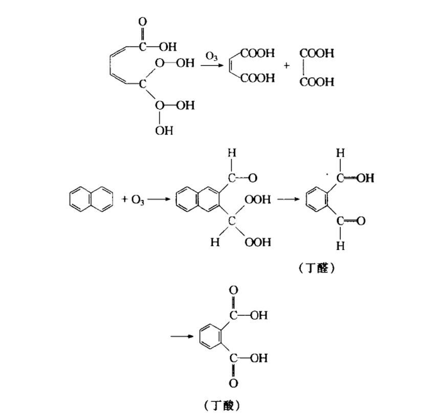 臭氧在水溶液中與有機物的反應(yīng)極其復(fù)雜,下面僅以大家公認的幾種反應(yīng)式列出以供參考。